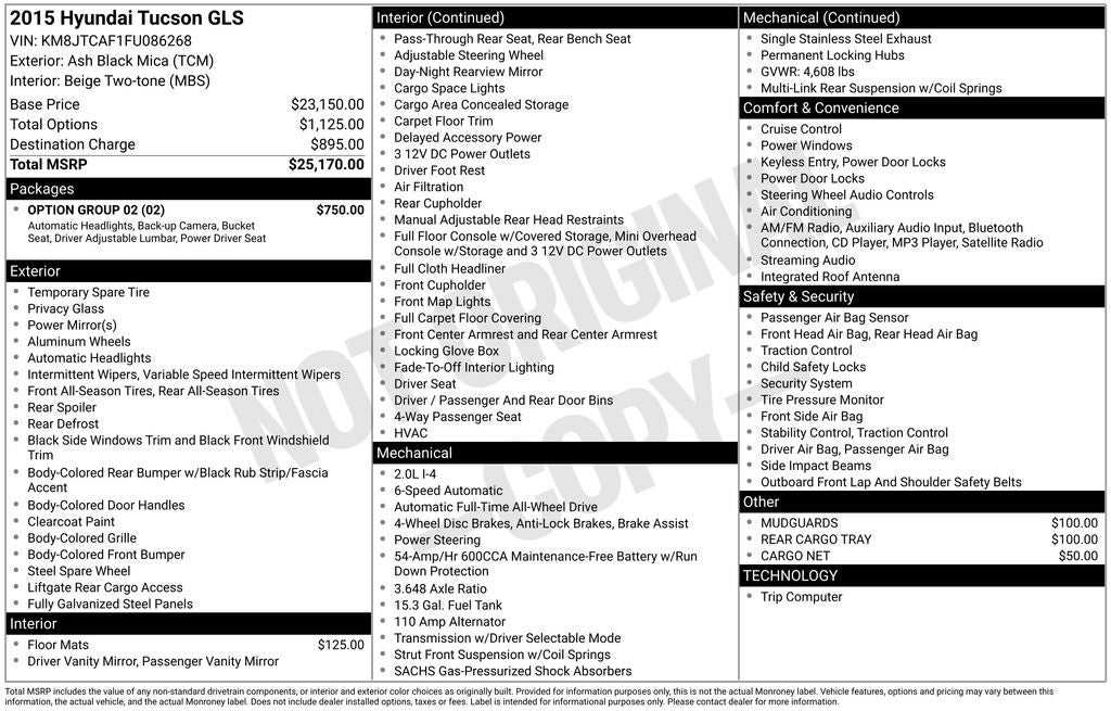 Ash Black Mica 2015 Hyundai Tucson GLS 4D Sport Utility AWD 6-Speed Automatic with Overdrive 2.0L DOHC