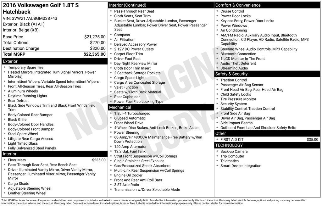 - Vehicle Name: Volkswagen Golf