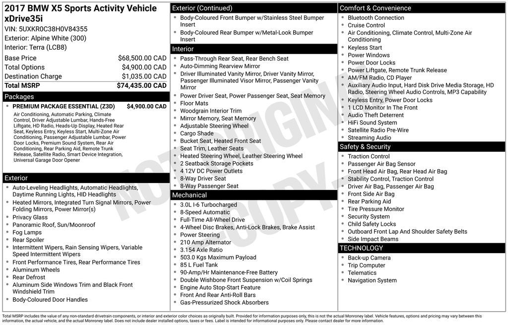 Experience the exceptional driving dynamics and refined luxury of this 2017 BMW X5 xDrive35i. With its powerful engine, advanced technology, and premium amenities, this SUV is poised to exceed your expectations. Schedule a test drive today and discover the joy of owning this exceptional BMW.