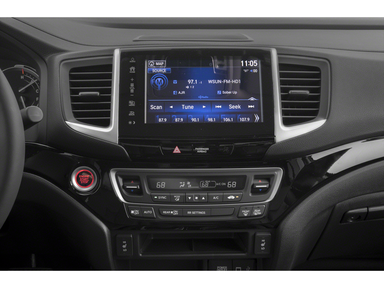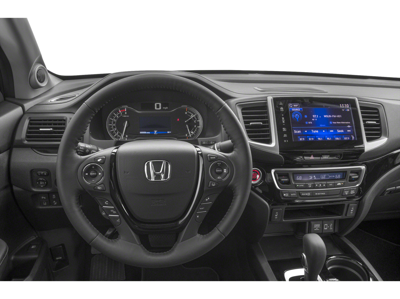 - Radio: AM/FM/MP3 w/Nav System & Truck-Bed Audio -inc: 540-watt premium audio system, 8" display audio w/high-resolution WVGA (800x480) electrostatic touch-screen and customizable feature settings, 8 speakers including subwoofer, Bluetooth streaming audio, auxiliary input jack, Radio Data System (RDS), speed-sensitive volume control (SVC), 1.5-amp port in front/1.0-amp port in center console, Apple CarPlay, Android Auto, HondaLink, SMS text message function, HD radio, Pandora compatibility and 2.5-amp charging port