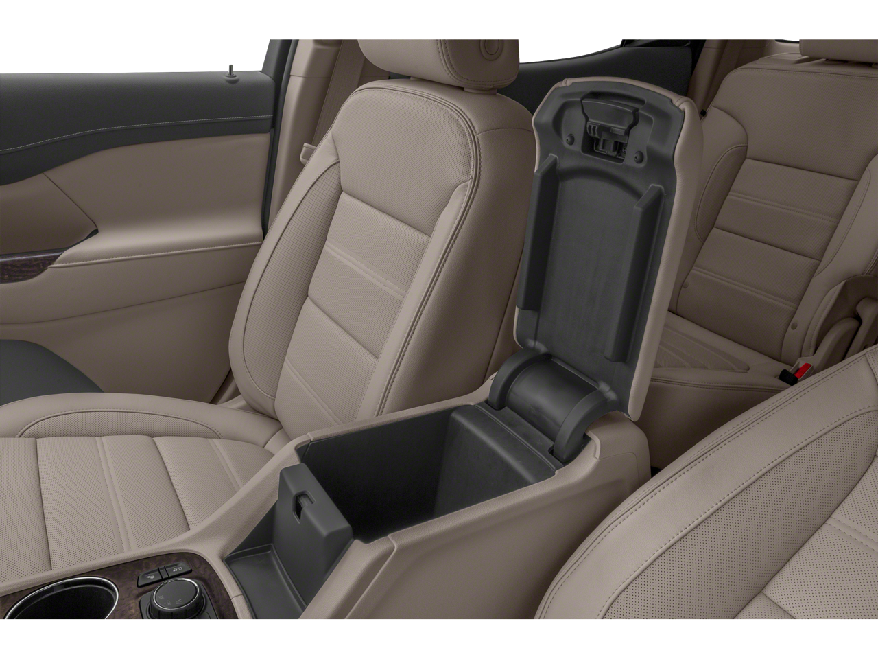 - Console, front center with 2 cup holders and storage, includes rear storage drawer