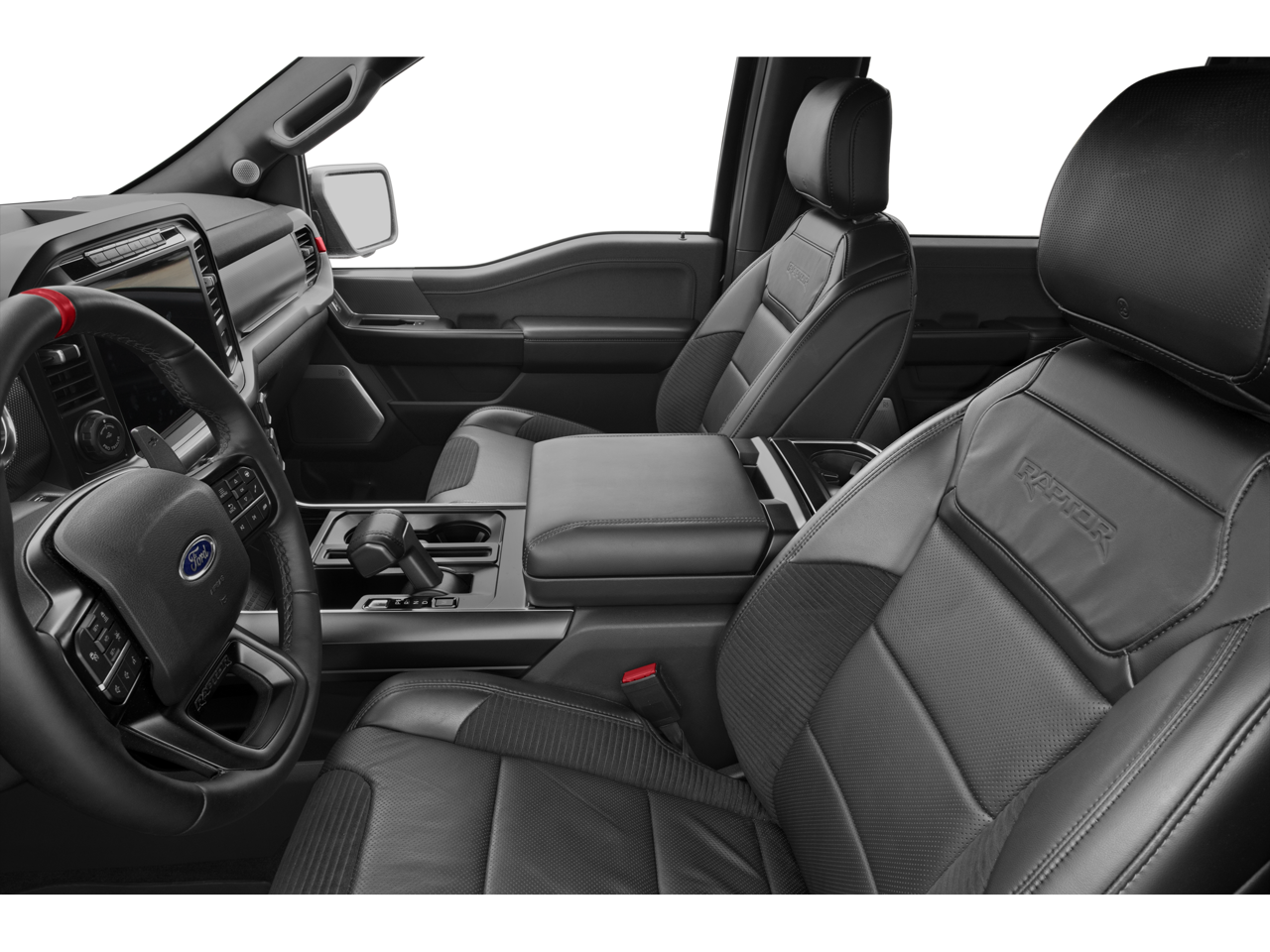 The Raptor's aggressive and distinctive styling sets it apart from the crowd, with unique 17-inch forged aluminum bead-lock capable wheels, Raptor 37 graphics, and a bold front grille. Step inside and you'll be greeted by a wealth of premium features, including a 360-degree camera, integrated trailer brake controller, pro trailer backup assist, and a premium B&O sound system.